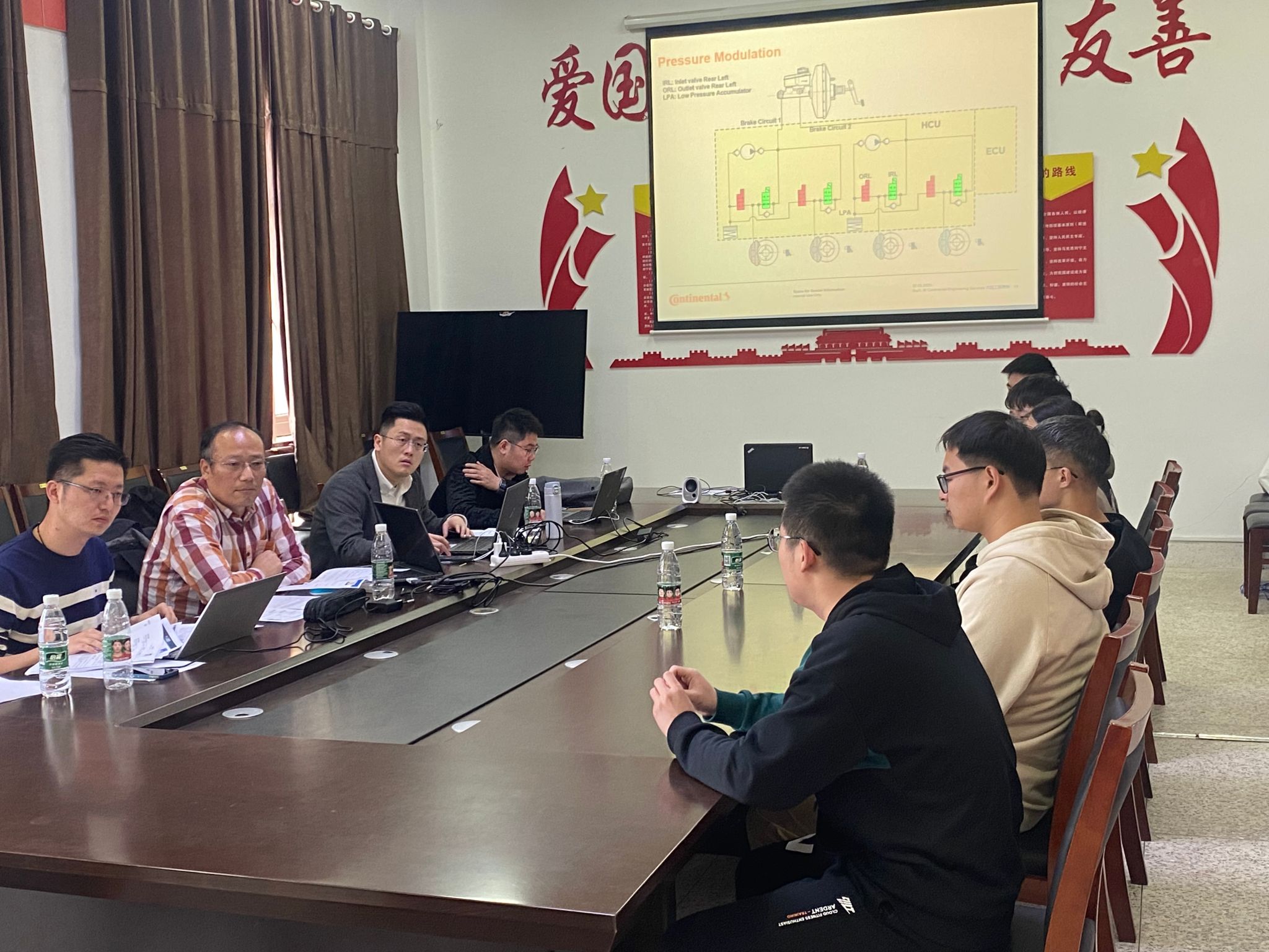 合作交流会伊始,杨军对大陆集团(中国)工程服务部总监苏剑一行的到来表示热烈欢迎,并详细介绍了汽车工程学院的成立、发展、学生培养及就业等情况。大陆集团(中国)工程服务部总监苏剑详细介绍了大陆集团的经营范围和主要研究项目,解读了公司的组织架构和经营理念,充分肯定了汽车工程学院毕业生的工作能力,期望能与学院建立长久的校企合作关系。底盘与制动系统部门经理朱冠臣展示了公司对员工定期培训的规划方案,针对如何培养学生就业意识等方面提出了建议,希望能共同培养出符合汽车产业需要的人才。熊新表示学院很重视此项合作洽谈,期望能借此机会推进学生预就业等相关事宜,与大陆集团工程服务部建立长久、稳定、有效的合作,更进一步推进落实校企合作、产教研融合的目标。