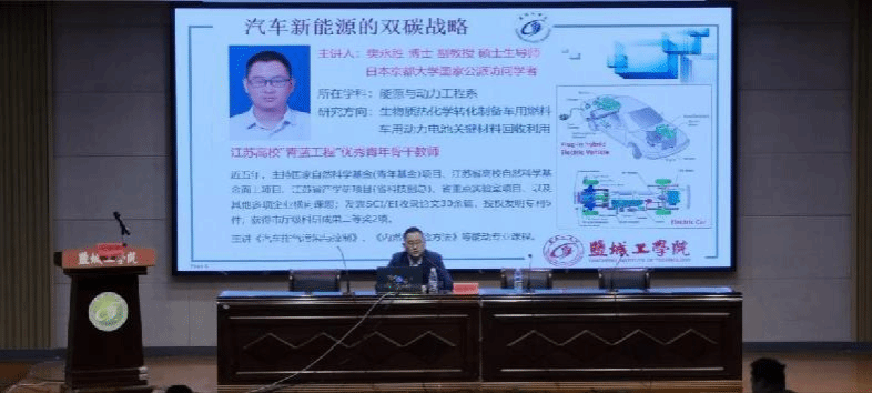 4月19日,汽车工程学院在机械馆报告厅举办《汽车新能源的双碳战略》学术报告。报告由汽车学院樊永胜博士主讲,学工办主任吴慰春主持,22级全体学生聆听了报告。
