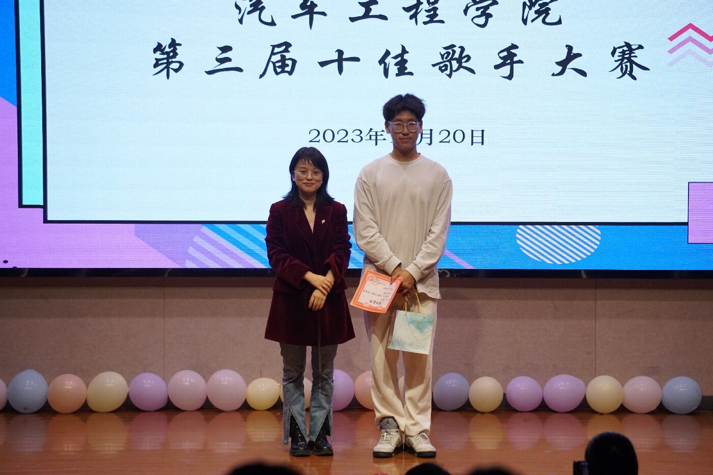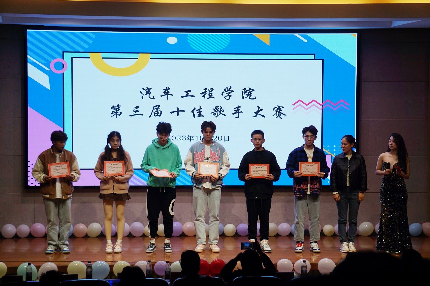 在白热化的角逐中,进入第二轮的十名选手火力全开,在舞台上尽情地展示自我,用动人的歌声和出色的舞台表现为现场观众带来一场视听盛宴。最终,经过激烈角逐,龚咏忆同学脱颖而出,荣获本次汽车工程学院十佳歌手冠军,许泽和杨家豪同学获得亚军和季军。