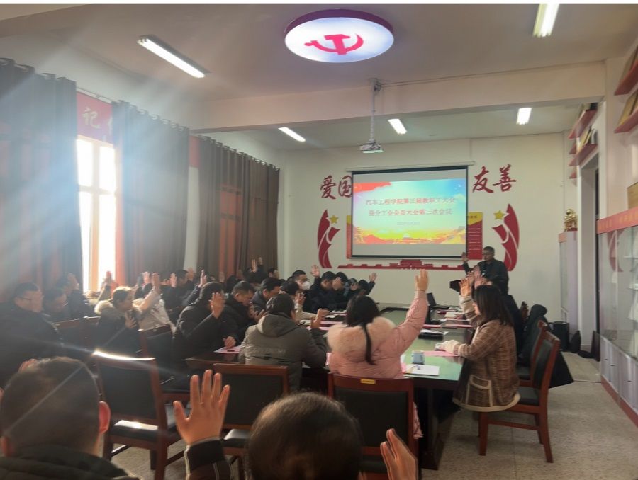12月20日下午,汽车工程学院在南校区机械馆A323会议室召开第三届教职工大会暨第三届工会会员大会第三次会议。会议由学院党总支书记杨军主持,学院党政领导和全院教职工、工会会员参加。