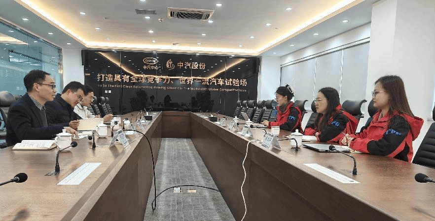 为加快推进现代产业学院建设工作,3月14日下午,汽车工程学院熊新副院长带队前往中汽研汽车试验场股份有限公司开展现代产业学院建设工作座谈会。中汽研综合管理部卢小凡部长,办公室主任严欣,工程师孙大平、周思雯,汽车工程学院能动系主任陈玉炜、实验中心主任刘基冈、李智宏老师共同参加了座谈会。