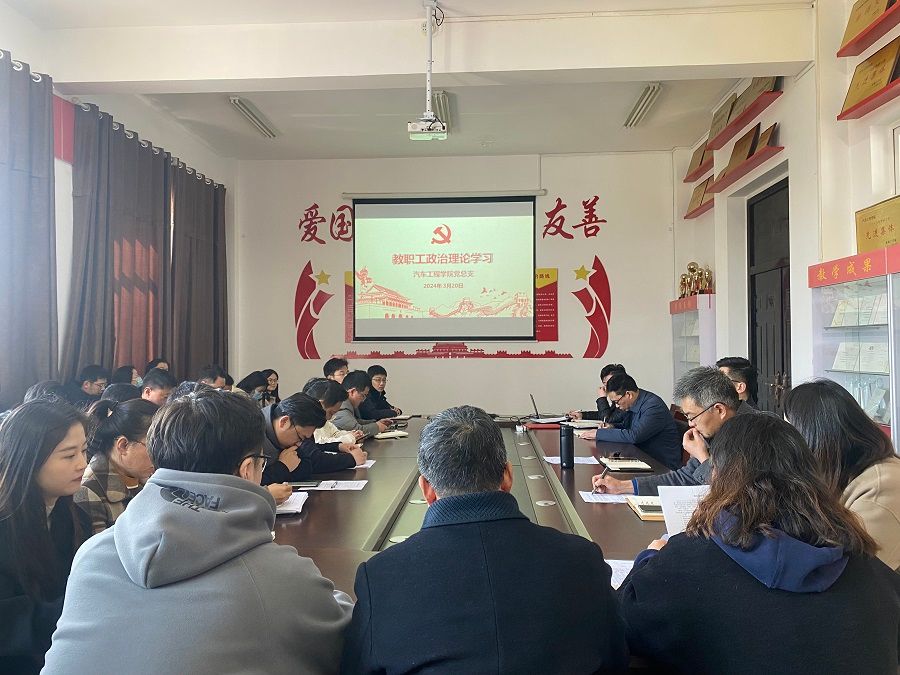 3月20日下午,在希望大道校区机械馆A323会议室,汽车工程学院召开教职工政治理论学习会,学院党总支书记杨军主持,学院全体教职工参加。