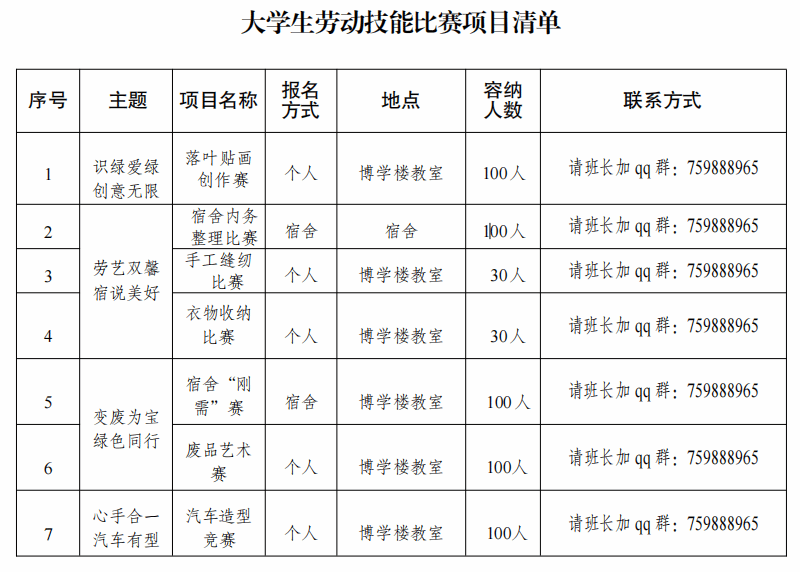 为全面贯彻党的二十大和全面教育大会精神,落实中共中央、国务院《关于全面加强新时代大中小学劳动教育的意见》和教育部《大中小学劳动教育指导纲要(试行)》的要求,努力构建具有综合性、实践性、开放性、针对性的教育体系,进一步推进我院劳动教育实施,引导学生树立自我管理意识,强化学生生活能力培养,特举办此次劳动技能比赛。